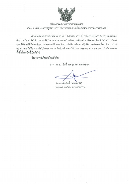 การขยายเวลาปฏิบัติราชการให้บริการประชาชนในช่วงพักกลางวันในวันราชการ