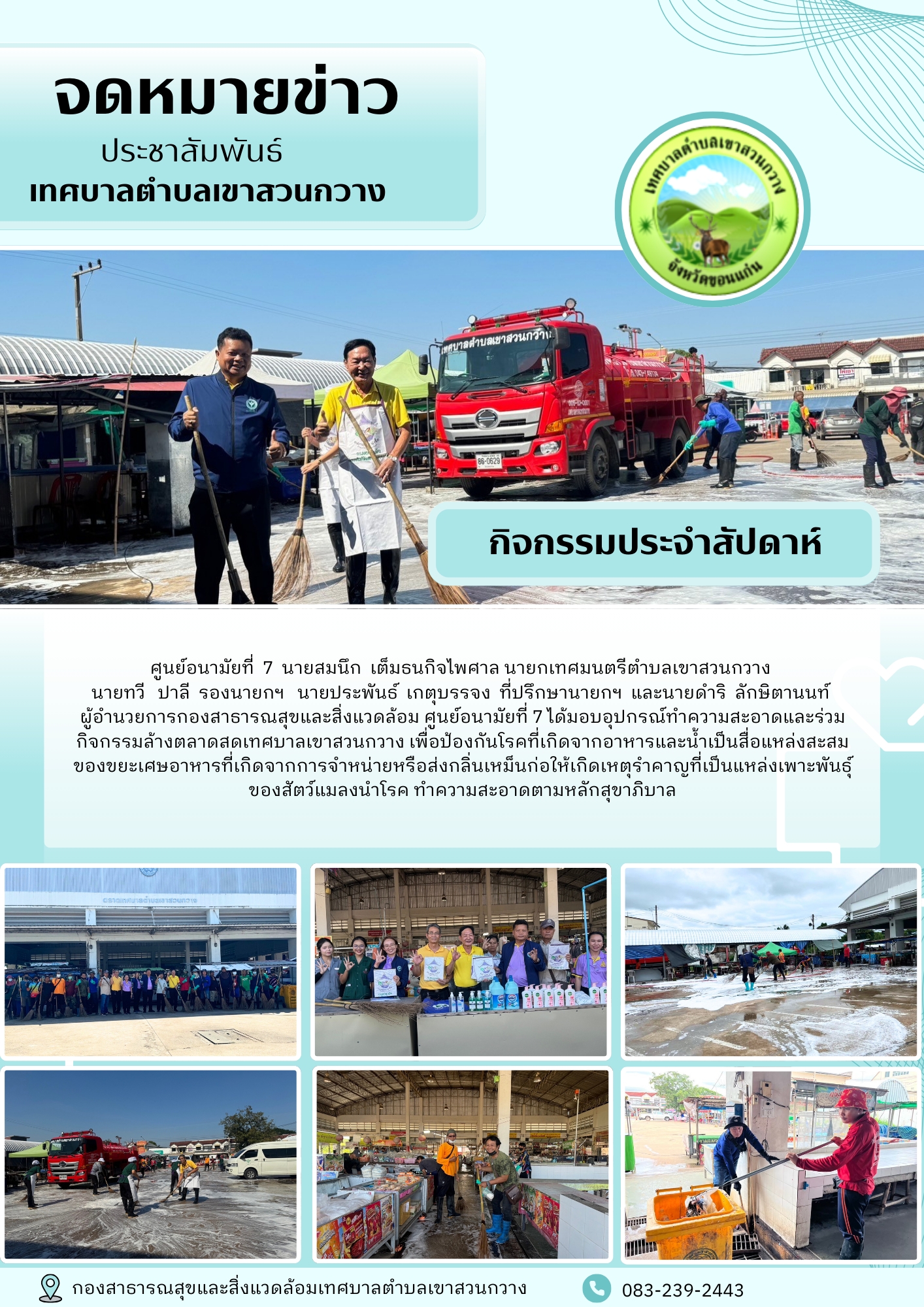 ศูนย์อนามัยที่ 7 ร่วมกิจกรรมล้างตลาดเทศบาลตำบลเขาสวนกวาง พร้อมมอบอุปกรณ์ทำความสะอาด