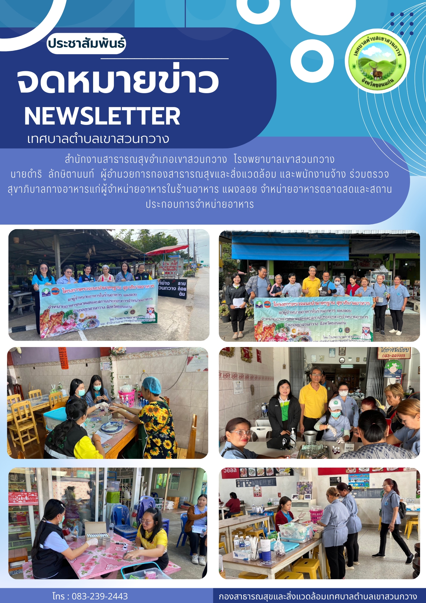 กองสาธารณสุขและสิ่งแวดล้อม เทศบาลตำบลเขาสวนกวาง ร่วมตรวจสุขาภิบาลอาหารแก่ผู้ประกอบการและผู้สัมผัสอาหาร รวมถึงสถานที่ประกอบกิจการ