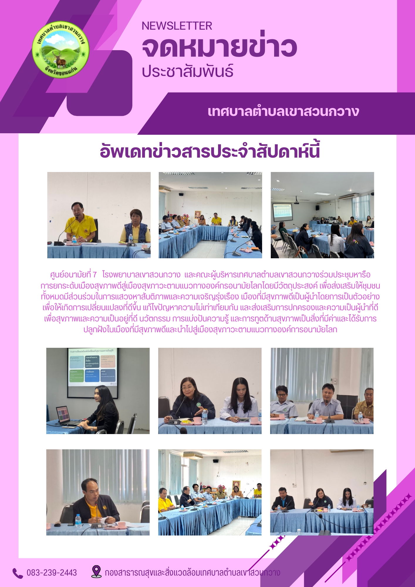 เทศบาลตำบลเขาสวนกวาง ร่วมกับ ศูนย์อนามัยที่ 7 และโรงพยาบาลเขาสวนกวาง ประชุมหารือการยกระดับเมืองสุขภาพดีสู่เมืองสุขภาวะตามแนวทางองค์กรอนามัยโลก