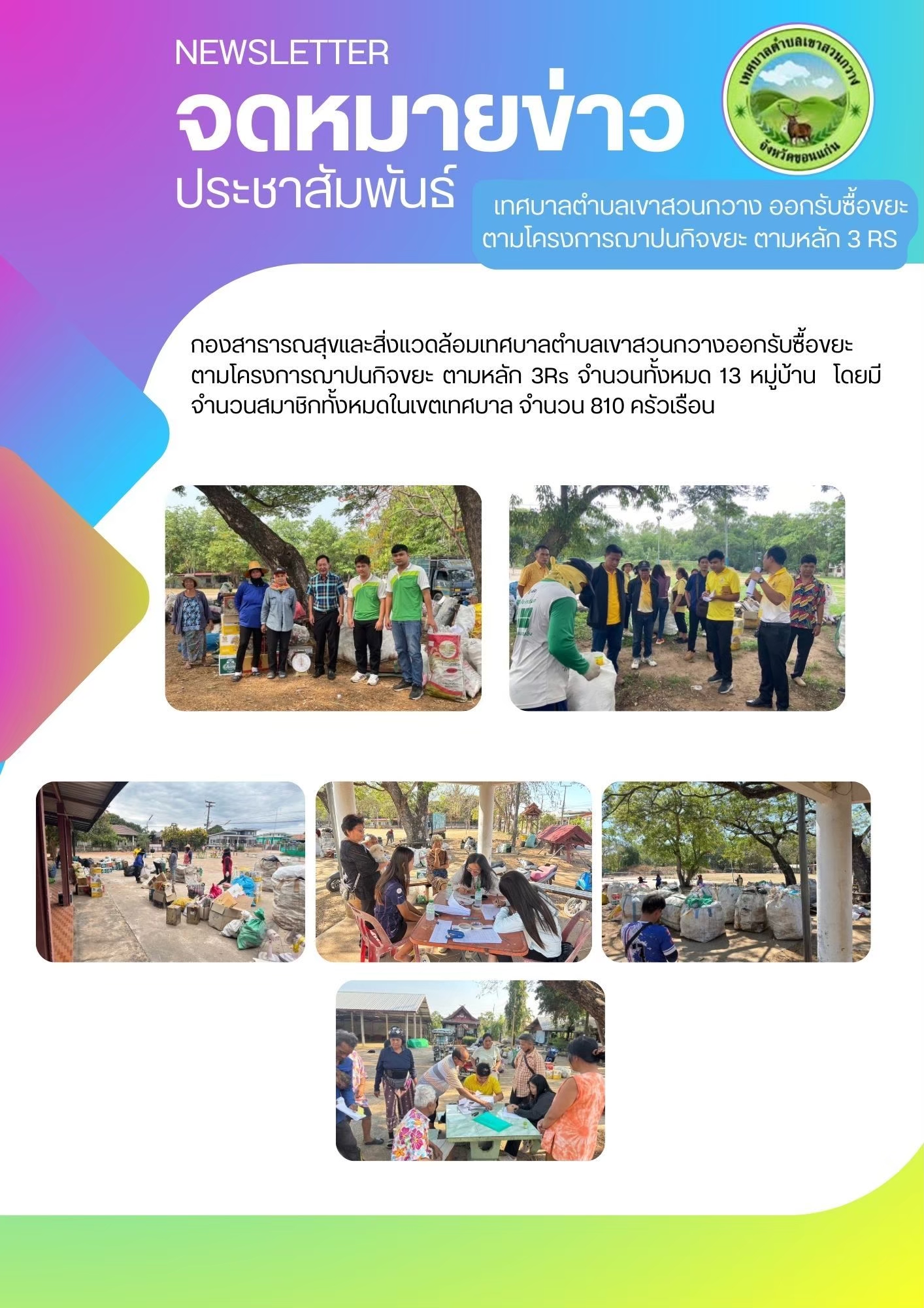 กองสาธารณสุขและสิ่งแวดล้อม เทศบาลตำบลเขาสวนกวาง รับซื้อขยะตามโครงการฌาปนกิจขยะ ตามหลัก 3Rs จำนวนทั้งหมด 13 หมู่บ้าน