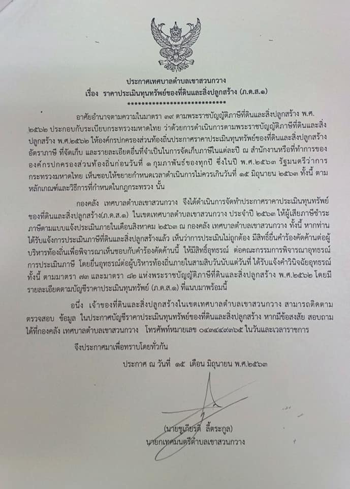 ประกาศราคาประเมินทุนทรัพย์ของที่ดินและสิ่งปลูกสร้าง(ภ.ด.ส.1)